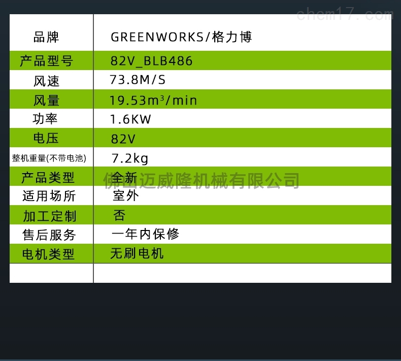 Glibo 82v blb486雙電池吹風(fēng)機(jī)產(chǎn)品參數(shù):品牌:greenworks/Glibo產(chǎn)品型號(hào):82v_blb486風(fēng)速:73.8m/s風(fēng)量:19.53m3/min功率:1.6kw電壓:82v整機(jī)重量(無電池):7.2kg產(chǎn)品類型:全新適用場(chǎng)所:戶外加工定制:無售后服務(wù):一年內(nèi)保修電機(jī)類型:無刷電機(jī)