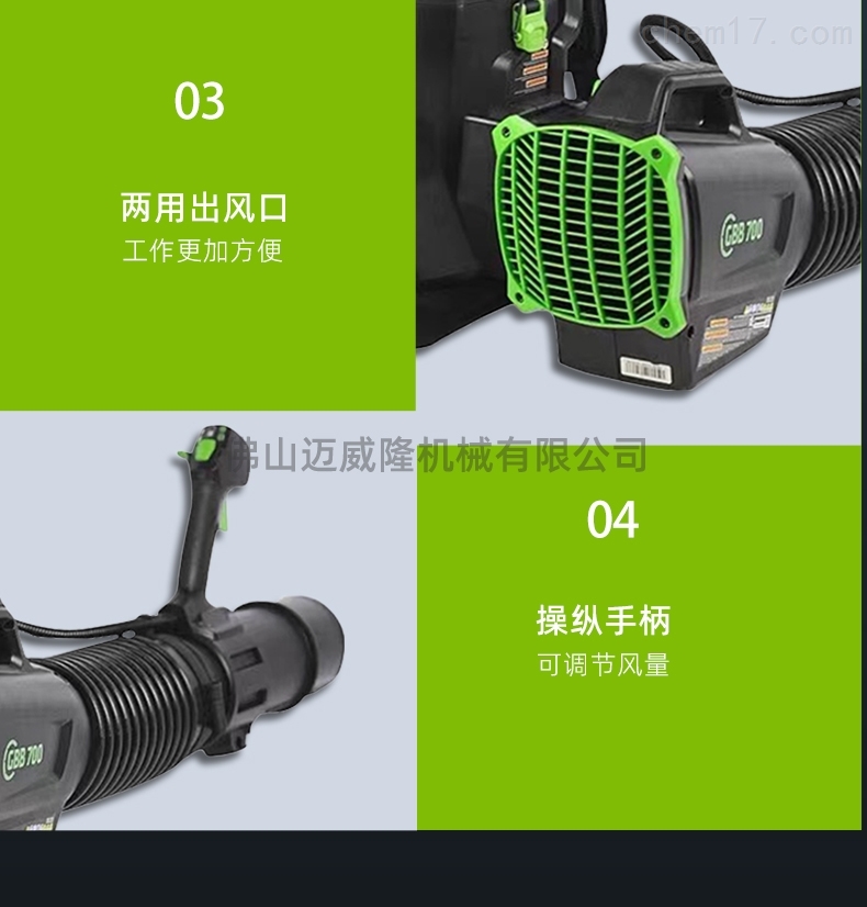 產(chǎn)品特點(diǎn):glebe 82v背包式吹風(fēng)機(jī),雙電池倉(cāng),一鍵啟動(dòng),無刷電機(jī)。它具有低噪音、雙電池室、長(zhǎng)壽命、低能耗、渦輪增壓、靈活性和便攜性的特點(diǎn)。一年保修,靈活輕便,可調(diào)節(jié)風(fēng)速,續(xù)航時(shí)間長(zhǎng),雙電池,高功率。適用于建筑工地吹渣、溫室吹雪、風(fēng)力滅火、道路清潔、衛(wèi)生清潔等。82v雙鋰電池吹風(fēng)機(jī),與雙電池同時(shí)安裝,使用時(shí)間更長(zhǎng),靈活輕便,具有巡航控制。使用地點(diǎn):在道路上吹礫石,在溫室里吹雪,在物業(yè)社區(qū)里吹落葉,森林滅火,風(fēng)力滅火。