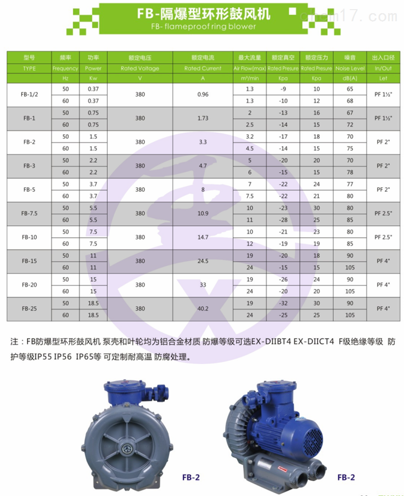 防爆風(fēng)機(jī)特點(diǎn):防爆風(fēng)機(jī)用于可燃?xì)怏w濃度高、需要通風(fēng)的場所,如地下煤礦、鍋爐房等。防爆風(fēng)機(jī)工藝要求:在風(fēng)機(jī)啟動(dòng)和運(yùn)行過程中,電機(jī)接線端子產(chǎn)生的火花,定子和轉(zhuǎn)子或其他部件不接觸外部易燃易爆氣體,導(dǎo)致安全事故。旋轉(zhuǎn)部件(風(fēng)機(jī)葉輪為塑料或鋁)在特殊情況下與殼體摩擦?xí)r不會(huì)產(chǎn)生火花,以免點(diǎn)燃可燃?xì)怏w造成嚴(yán)重后果。當(dāng)然,防爆風(fēng)扇需要由防爆電機(jī)驅(qū)動(dòng)。